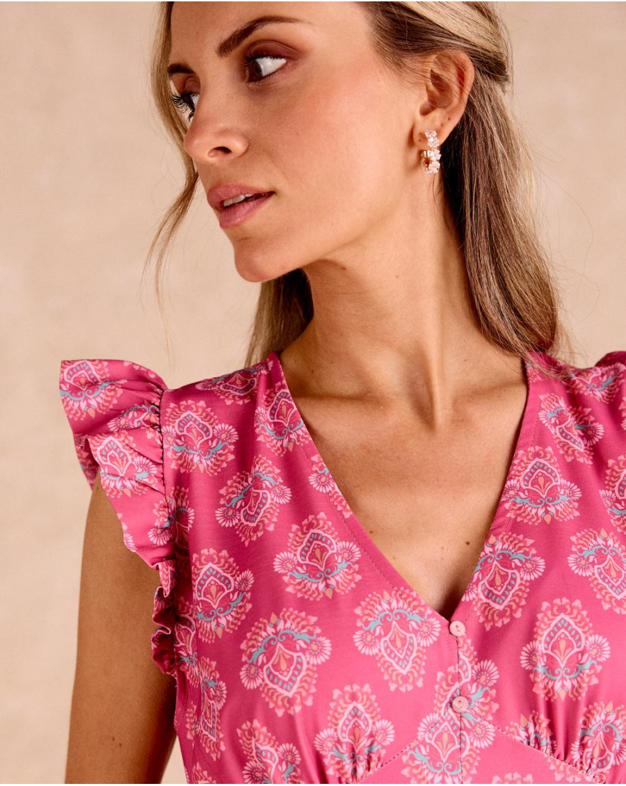 Espadrillas piatte in pelle scamosciata color lampone. Punta leggermente appuntita. Scollo arrotondato. La soletta ha un cuscinetto per un maggiore comfort. Un'espadrillas comoda e femminile da indossare tutti i giorni.